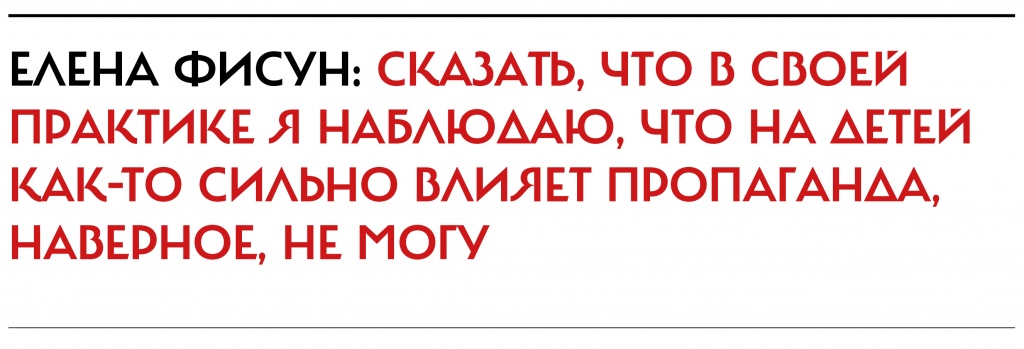 У средних школьников это, конечно, более сглажено. А у подростков — другое. Для них ведущая деятельность — группа, общение, они начинают образовывать коалиции между собой, кто за кого, какую точку зрения принимает. Это как одежда или прическа — я придерживаюсь определенной точки зрения, я за Путина, или наоборот, — я против Путина. Но сказать, что в своей практике я наблюдаю, что на детей как-то сильно влияет пропаганда, наверное, не могу. Если и влияет, то опосредованно, через семью.