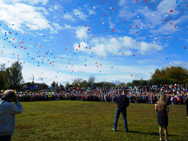 Праздничную картину украсил ставший традиционным запуск гелевых шаров. Кстати, в этом году шарики на построении символизировали российский триколор - мы ведь патриоты и горячо любим свою большую и малую родину. Звучала песня, призывающая к миру.