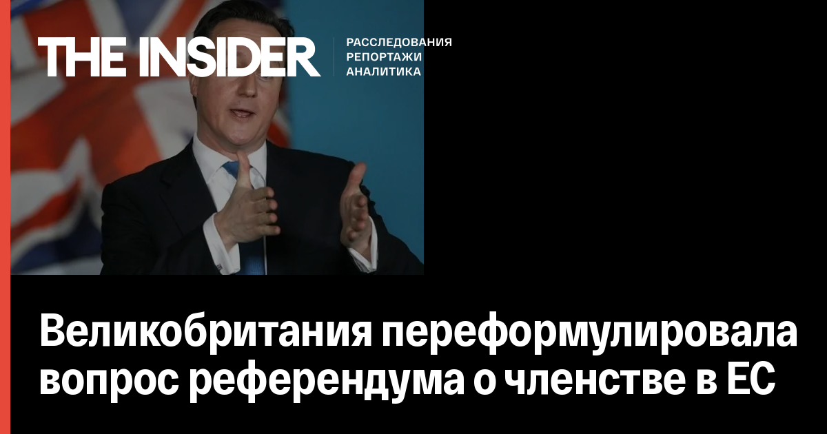 Премьер-министр Великобритании Дэвид Кэмерон одобрил изменение формулировки вопроса, издание отмечает, что это выглядит как поражение в кампании по выходу страны из ЕС.