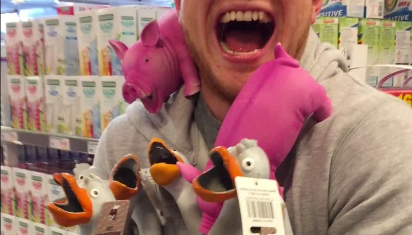 У видео, опубликованного 30 августа, более 4 миллионов просмотров (а если учесть все копии, куда больше). Его автор, 22-летний норвежец Кевин Синнес, рассказал VICE обстоятельства съемки. Синнес и его девушка зашли в автомагазин и, не найдя нужного им товара, обратили внимание на корзину с резиновыми игрушками для собак.