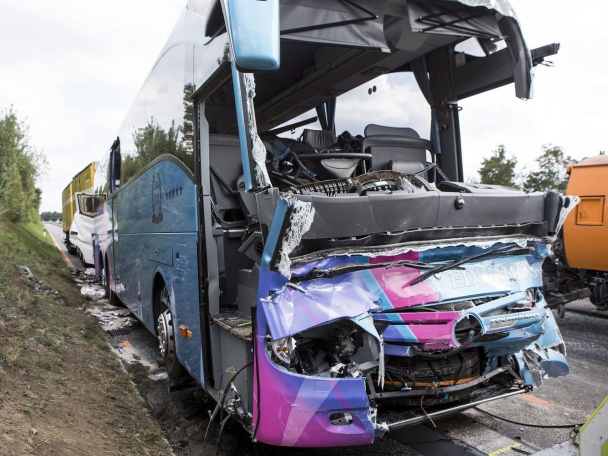 Четыре человека госпитализированы в тяжелом состоянии, еще трое получили травмы средней тяжести. На трассе столкнулись четыре грузовика и туристический автобус. Авария произошла на аварийном участке, где ведутся ремонтные работы.