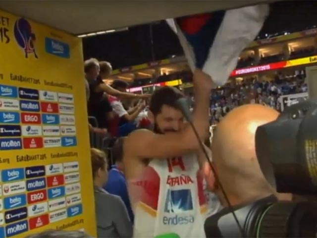 Баскетболист сборной Испании после матча порвал сербский флаг