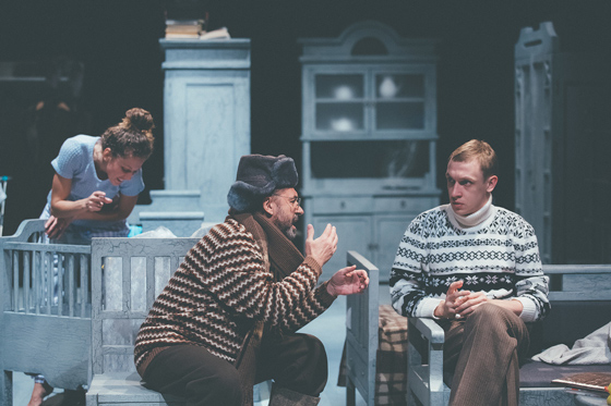 © Фрол Подлесный Не обошлось, впрочем, и без интерпретационной микрохирургии. Анфиса, например, здесь не старуха, а молодая беременная горничная, и она почти умеет говорит — оттого, по всей видимости, что на шаг ближе к народу; Чебутыкин дает понять Ирине, что он ее отец; Соленый признается Ирине в любви, предварительно закрыв ее в шкафу. Ни то, ни другое, ни третье суммы смыслов, впрочем, не меняет, и на вопрос «почему это так» здесь вполне резонен ответ «а почему бы, собственно, и нет».