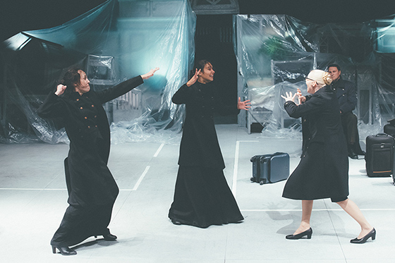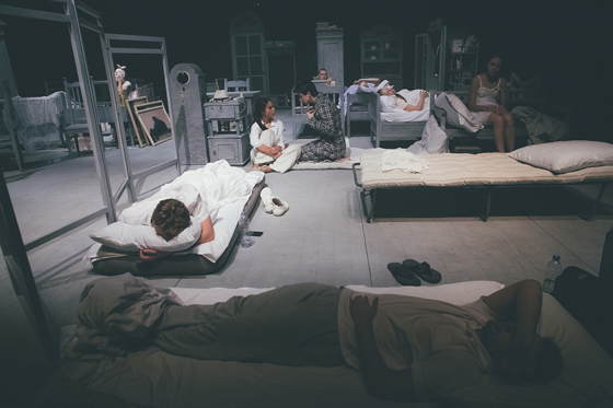 © Фрол Подлесный Да, это оригинальный образец в копилку «чего только не бывает» и вместе с тем — до смешного лобовая иллюстрация трюизма: мол, у Чехова «никто никого не слышит». Но вместе с тем — кристально чистый в своей реализации эксперимент в области психологического театра, притом годный, думается, для любого заезженного драматургического материала. Как поведет себя, скажем, принц Гамлет, лиши его дара речи, можно еще пофантазировать, а для чеховских подводных течений, как оказалось, такой прием служит как минимум увеличительным стеклом — и это, конечно, главное. Необходимость постоянно жестикулировать лишает героев возможности существовать интимно, при этом ни одна реплика не может остаться неуслышанной, поскольку глухонемой вынужден всякий раз обращать на себя внимание собеседника перед репликой, и здесь как раз обнаруживается парадоксалистский реверанс — выясняется, что у Чехова на самом-то деле все друг друга отлично слышат. Впрочем, логической причиной всеобщей глухоты в предложенной Кулябиным концепции может быть и социальное положение персонажей: о чем говорить девушкам, владеющим пятью языками, с дремучим населением, окружающим их дом? Они немы для мира, а их дом — не что иное, как резервация, гетто для меньшинства.