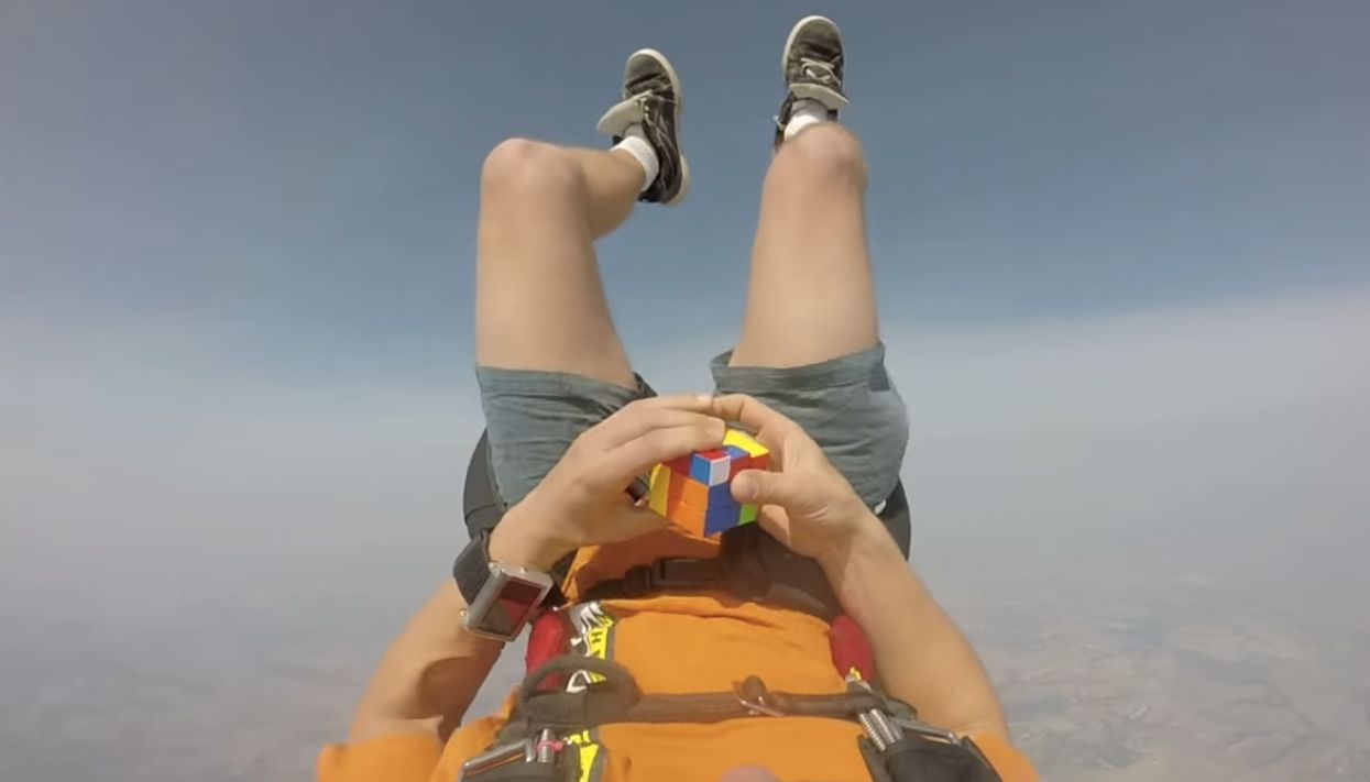 Парашютист собрал кубик Рубика в свободном падении
