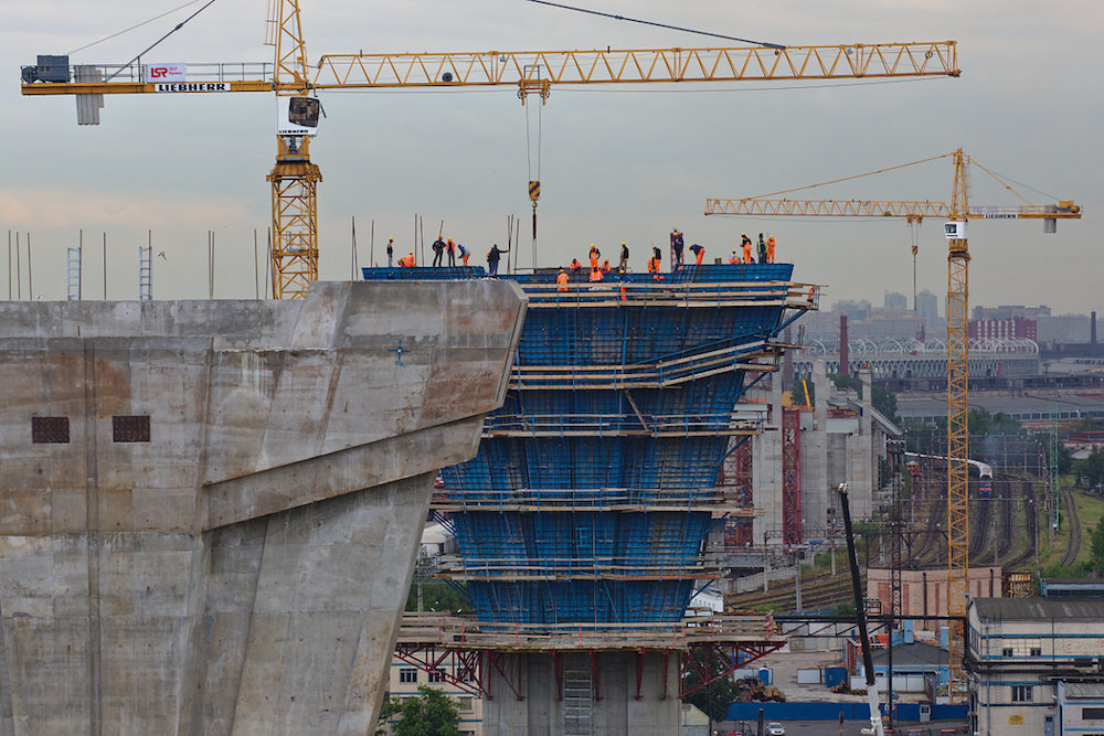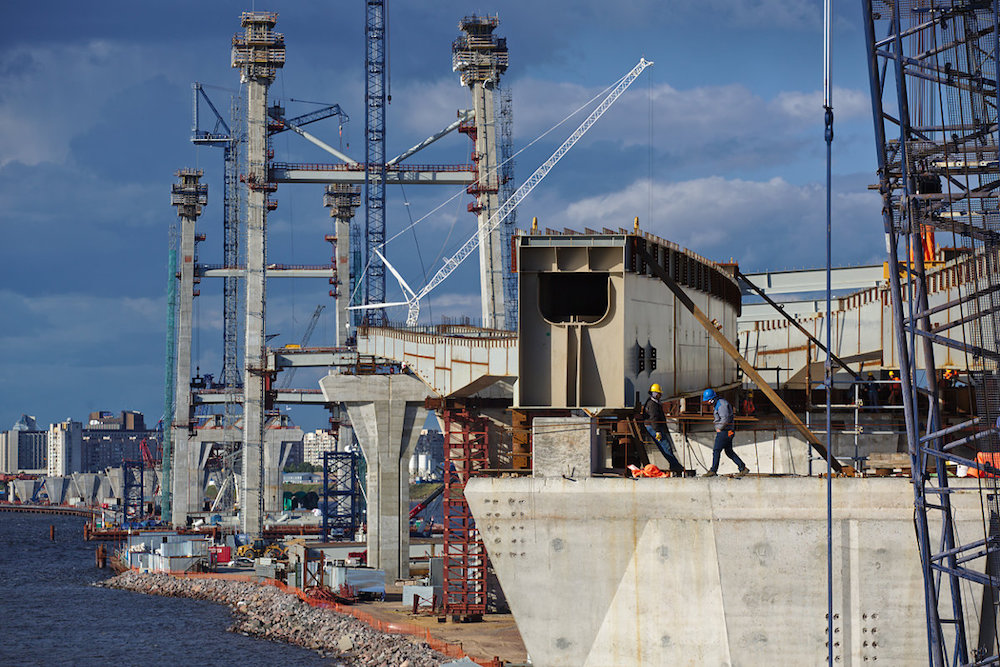 Как в Петербурге на высоте 50 метров строят скоростную дорогу: индустриальная фотоистория о ЗСД