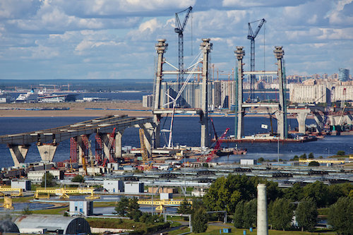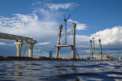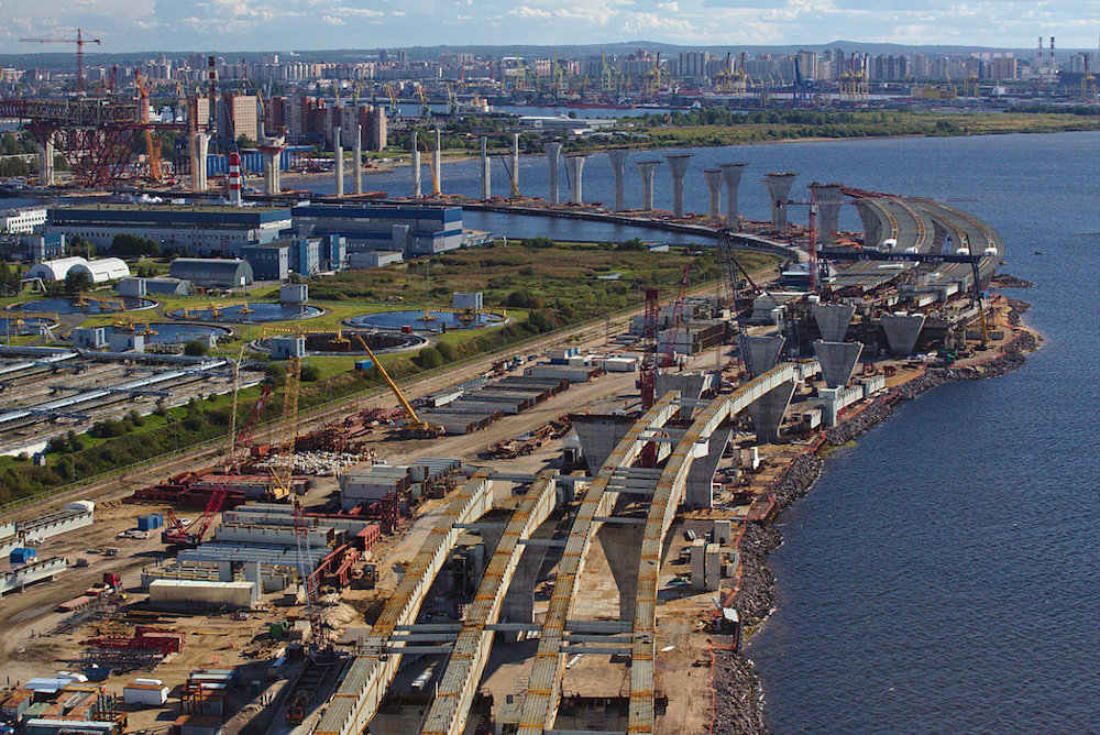 Западный скоростной диаметр — один из самых широкомасштабных в практике ICA. На стройплощадках задействованы тысячи рабочих, десятки башенных, сотни автомобильных и гусеничных кранов. Устье Невы
