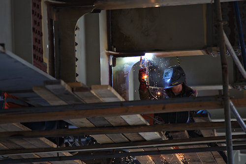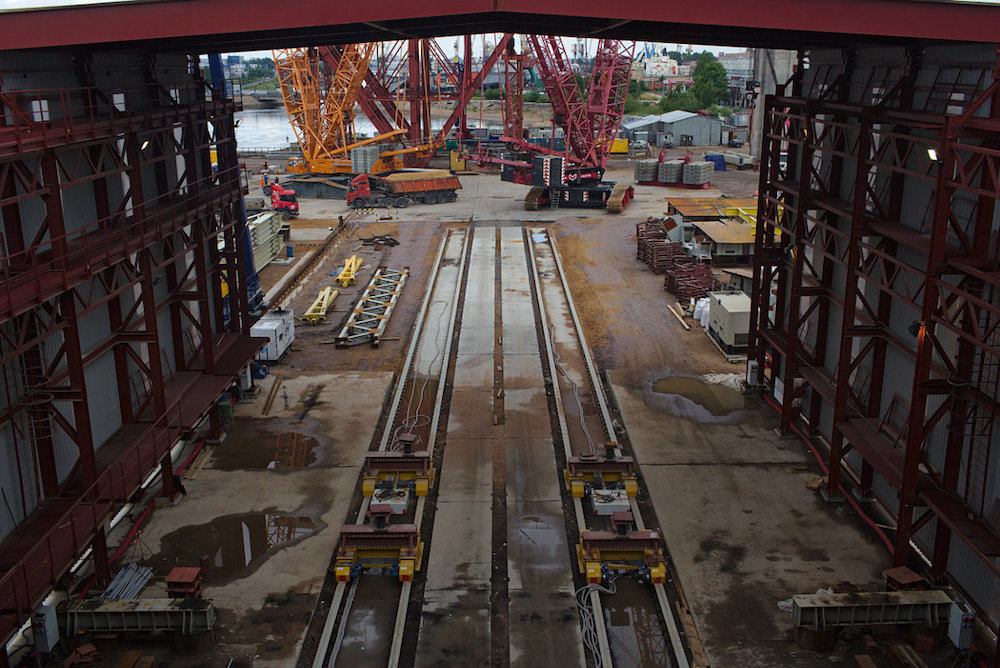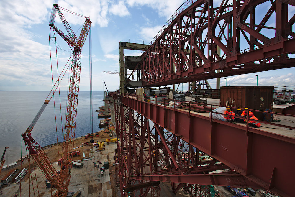 Из-за частых штормовых ветров с Финского залива работы по монтажу пролетных порой откладываются — иногда на несколько дней, пока не установится относительно спокойная погода.