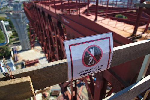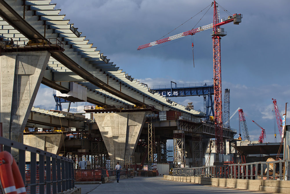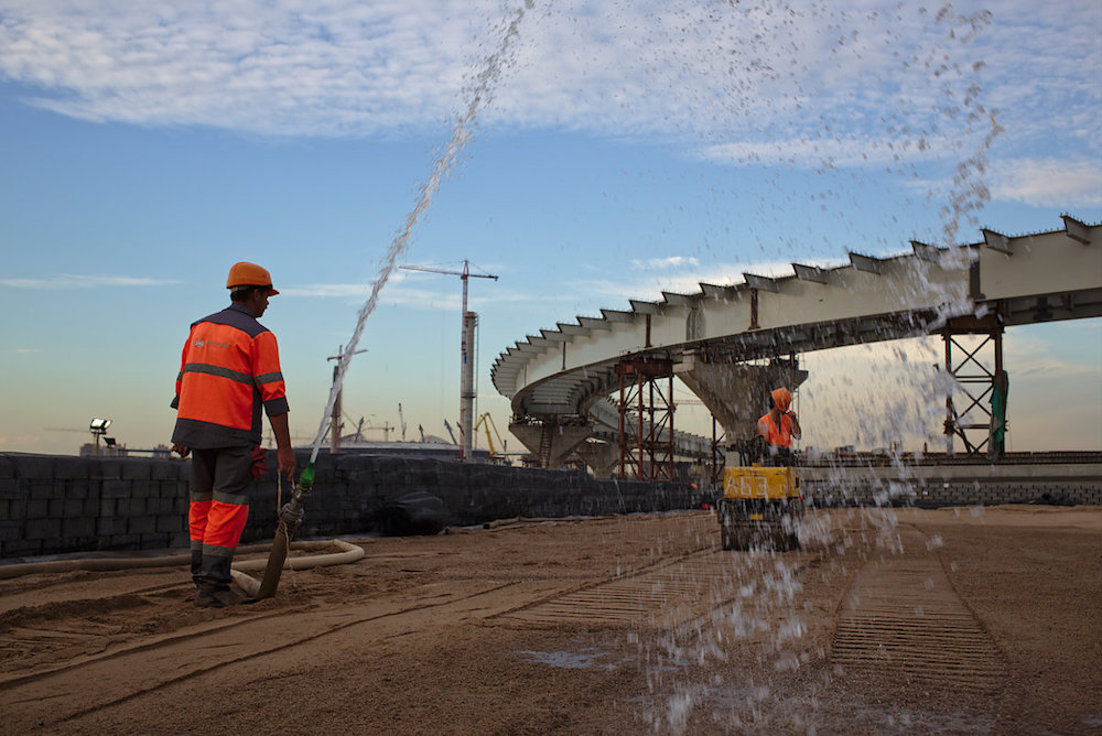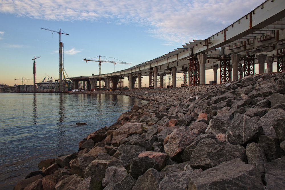 Скорость возведения моста через Петровский фарватер снизилась. Во время очередной проверки выяснилось, что уложенный в конструкцию верхней части северного пилона бетон не набрал требуемой прочности. Несмотря на небольшое расхождение цифр, опору решили частично разобрать и забетонировать заново. В официальном комментарии говорится, что ситуация является штатной и не повлияет на сроки сдачи автострады. Первую часть фотопроекта Антона Ваганова о Западном скоростном диаметре можно посмотреть на его сайте.