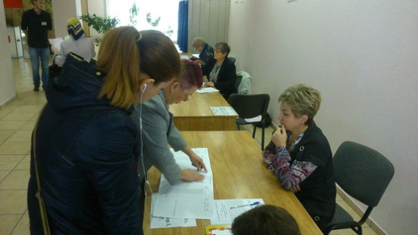Следующие несколько участков встретили нас не очень дружелюбно, однако, зарегистрировали и показали все необходимое — там не оказалось пометок, но там сидели абсолютно аморфные наблюдатели, которые даже не имели возможности обозревать столы регистрации, да и зачем им это в принципе, они там явно сидели не для этого. Что можно увидеть, сидя в самом конце коридора—- там места для наблюдателей: