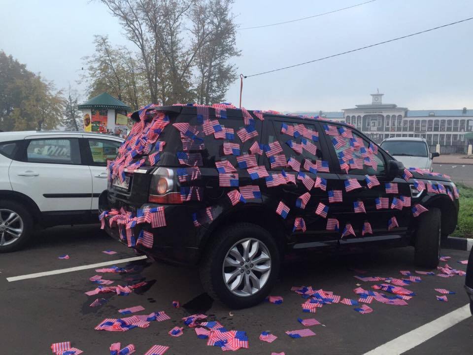 Машину Навального в Костроме обклеили американскими флагами
