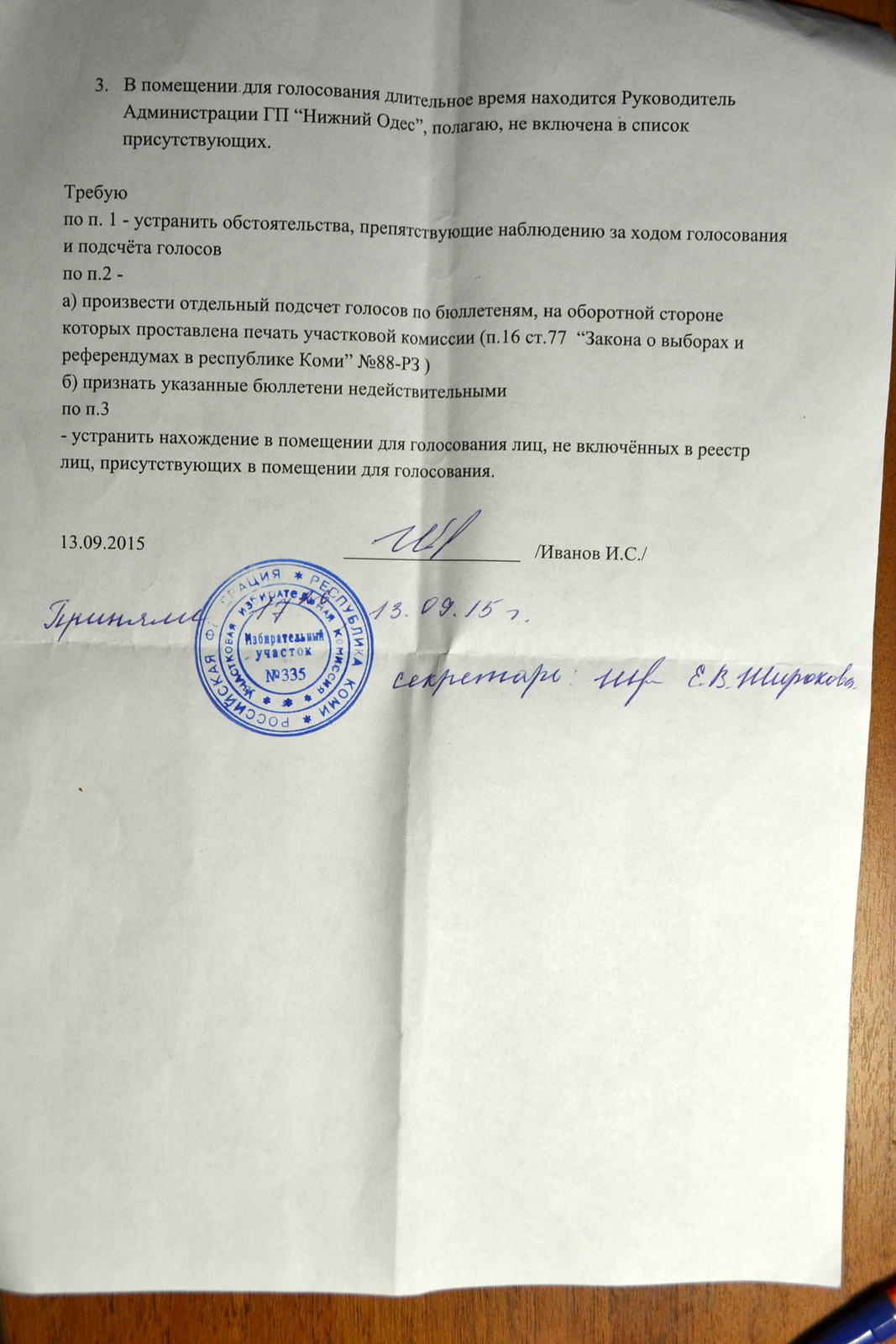 Согласно п.16 ст.77 “Закона о выборах и референдумах в республике Коми” №88-РЗ "... участковая комиссия по требованию любого члена комиссии, наблюдателя