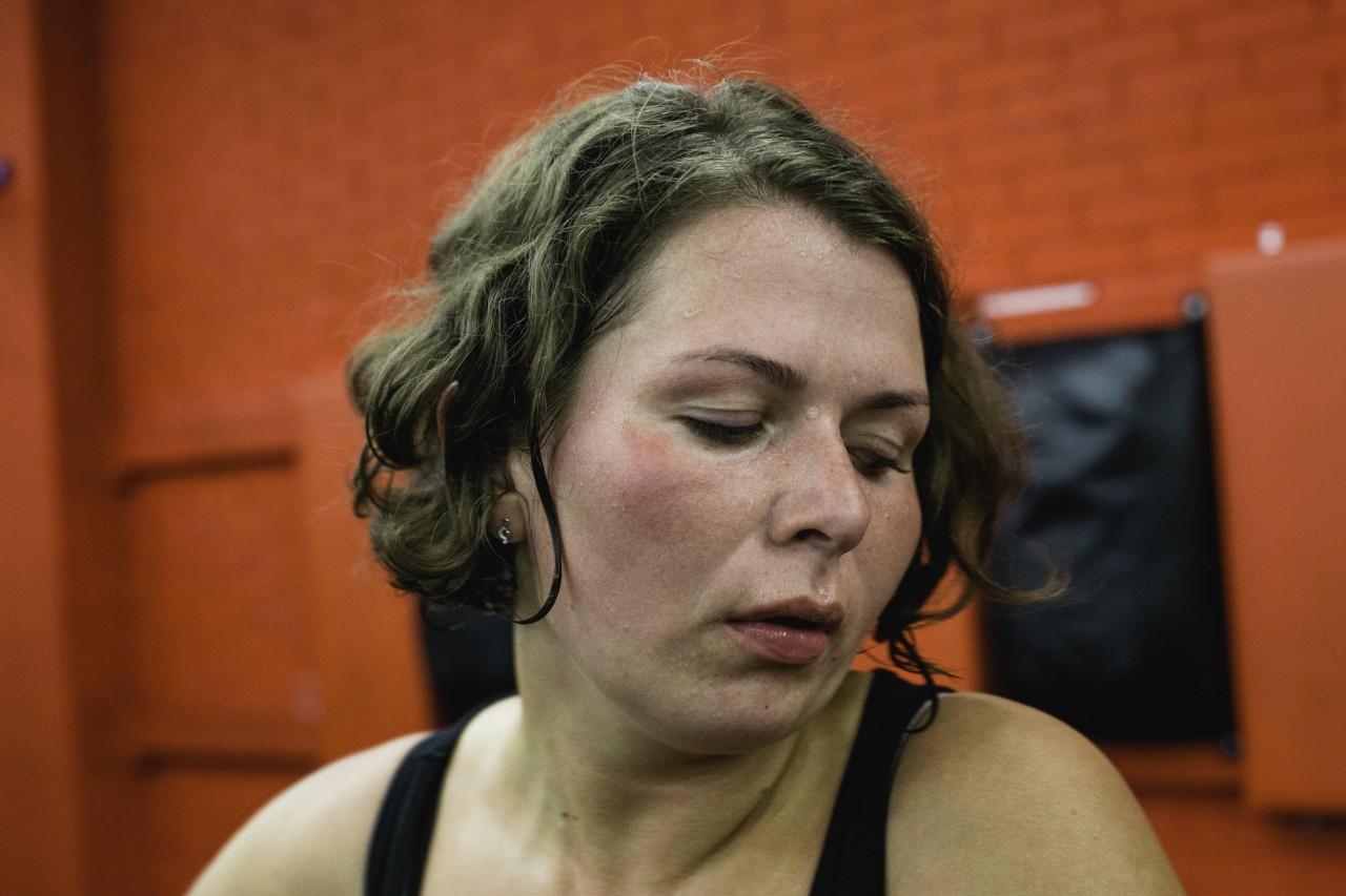 Слева: Вика готовится к своей первой за месяц тренировке по боксу. До этого из-за проблемы с левой рукой занятия пришлось отложить.Справа:«Бокс появился в моей жизни случайно. Со спортом никогда не складывалось, но заниматься чем-то надо было. Выбрала йогу и пилатес. Как-то наша йогиня заболела, и нам поставили бокс на замену. «Бокс так бокс», — подумала я и поплелась. А дальше — искра, любовь и страсть на всю жизнь».Фото: Ксения Иванова для ТД