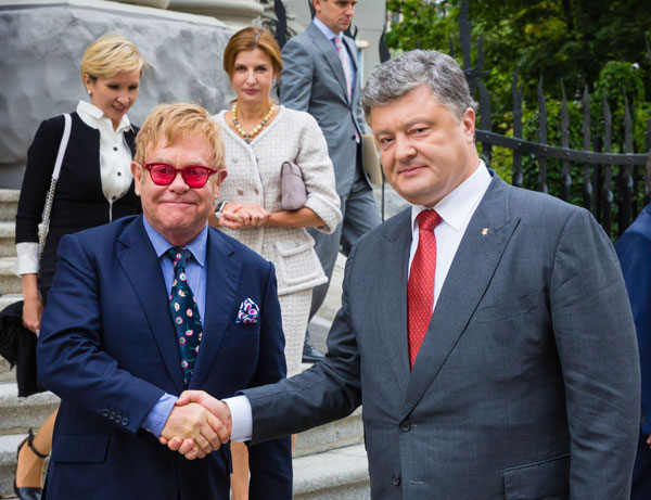 Элтон Джон и Петр Порошенко. Фото: dyvys.in А откуда взялась тема "в случае обращения" и поговорить? Э.Джон был в Киеве. В субботу встретился с П.Порошенко, а также призвал украинцев поддержать местное ЛГБТ-сообщество, а украинских бизнесменов - не отвергать сотрудников-геев. Ну вот, если с одним президентом встретился, так чего бы и не с другим? Соответственно, еще в Киеве он сообщил Би-Би-Си, что был бы не прочь обсудить с Путиным "смехотворное" отношение к правам геев в России: "Я хотел бы встретиться с Путиным. Это, скорее всего, утопическая идея. Он может рассмеяться за моей спиной, когда закроется за мной дверь, и назвать меня полным идиотом. Но, по крайней мере, я буду знать, что у меня хватило совести попытаться" ("but at least I can think I have the conscience to say I tried" — у него в оригинале). Разумеется, культурные люди тут обязаны вспомнить "Гнездо кукушки", "но я хотя бы попытался" (McMurphy: But I tried, didn't I? Goddamnit, at least I did that).