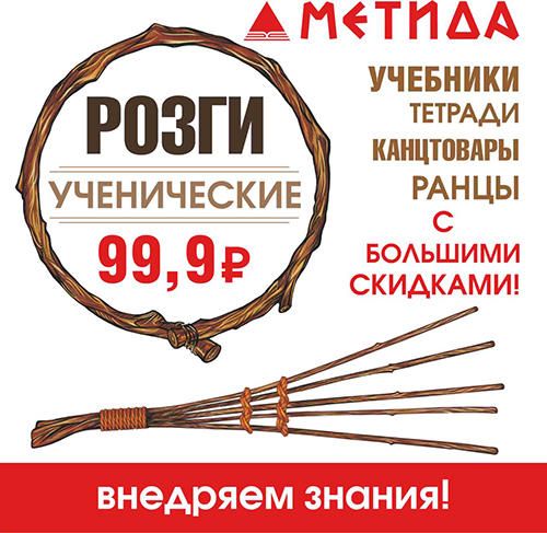 В Самарской области прокуратура запретила сети книжных магазинов «Метида» продавать розги для школьников. Как пояснили в прокуратуре, реклама розг не соответствует закону, поскольку призывает к насилию над детьми. Трех сотрудников сети привлекли к дисциплинарной ответственности.