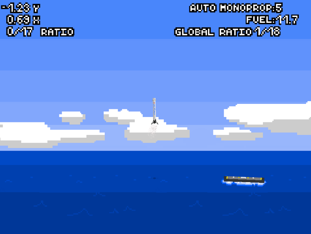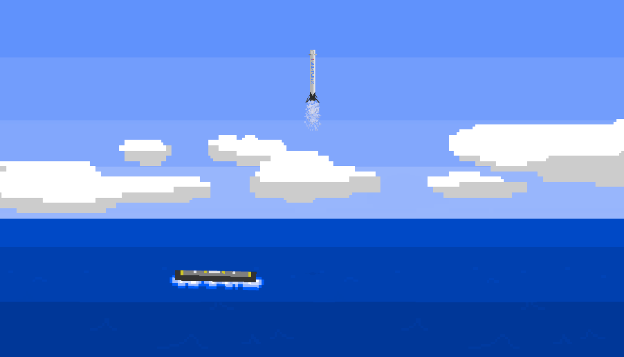 Немецкий пользователь сайта Scratch (проект MIT для создания мультфильмов и игр) под псевдонимом Dixiklo создал двумерный симулятор посадки ракет Falcon 9. Создатели Falcon 9, компания Илона Маска SpaceX, надеются на многократное использование ракет — для этого они хотят «ловить» их специальными платформами, расположенными в океане.