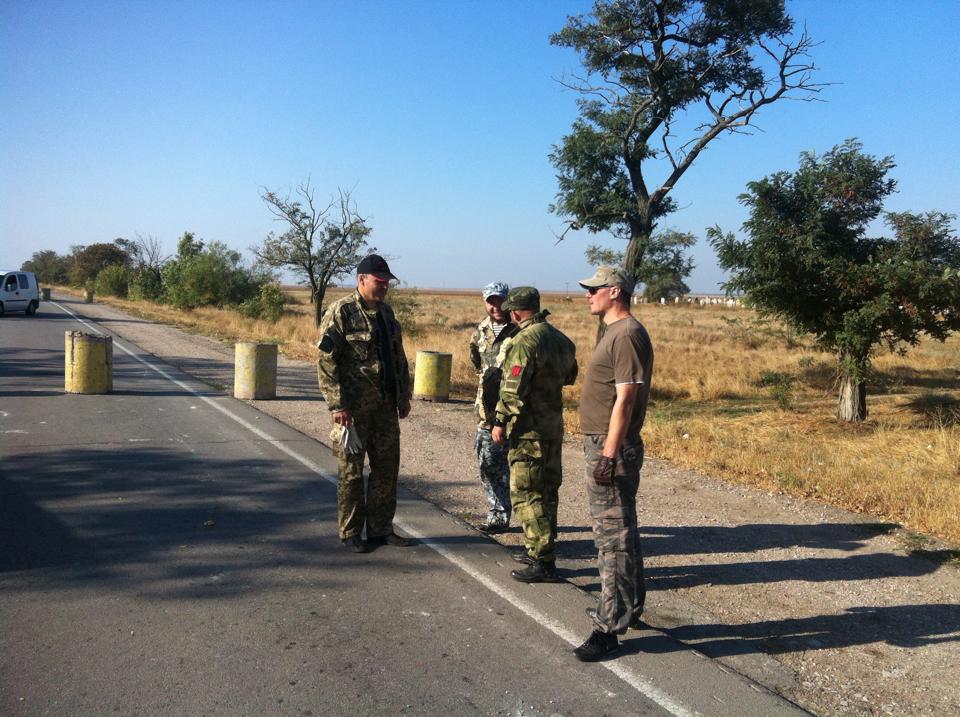 Участники акции поставили на дороге неподалеку от административной границы с Крымом бетонные блоки, тем самым установив блокпост.