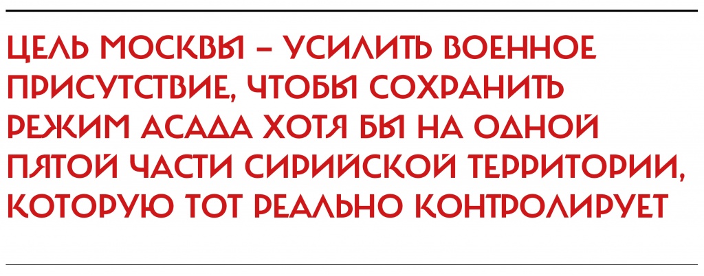 Поэтому вести настоящую войну в Сирии, на десятках фронтов, российское руководство, разумеется, не планирует. Его цель — усилить военное присутствие, чтобы сохранить режим Асада хотя бы на одной пятой части территории страны, которую тот сейчас реально контролирует. Сохранить — не потому, что Москве так уж необходим порт Тартус или так уж важна продажа сирийцам нашего оружия — покупателей в мире и так хватает. Упорное цепляние за Асада несет в себе иной подтекст.
