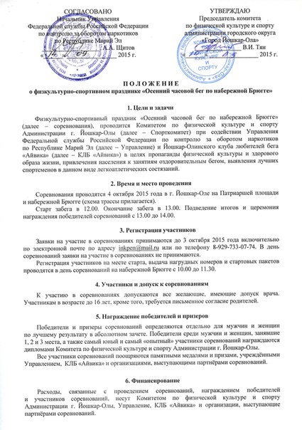 Положение о физкультурно-спортивном празднике "Осенний часовой бег по набережной Брюгге".
