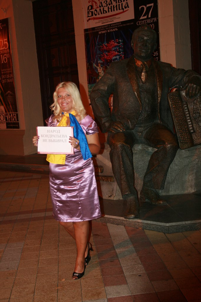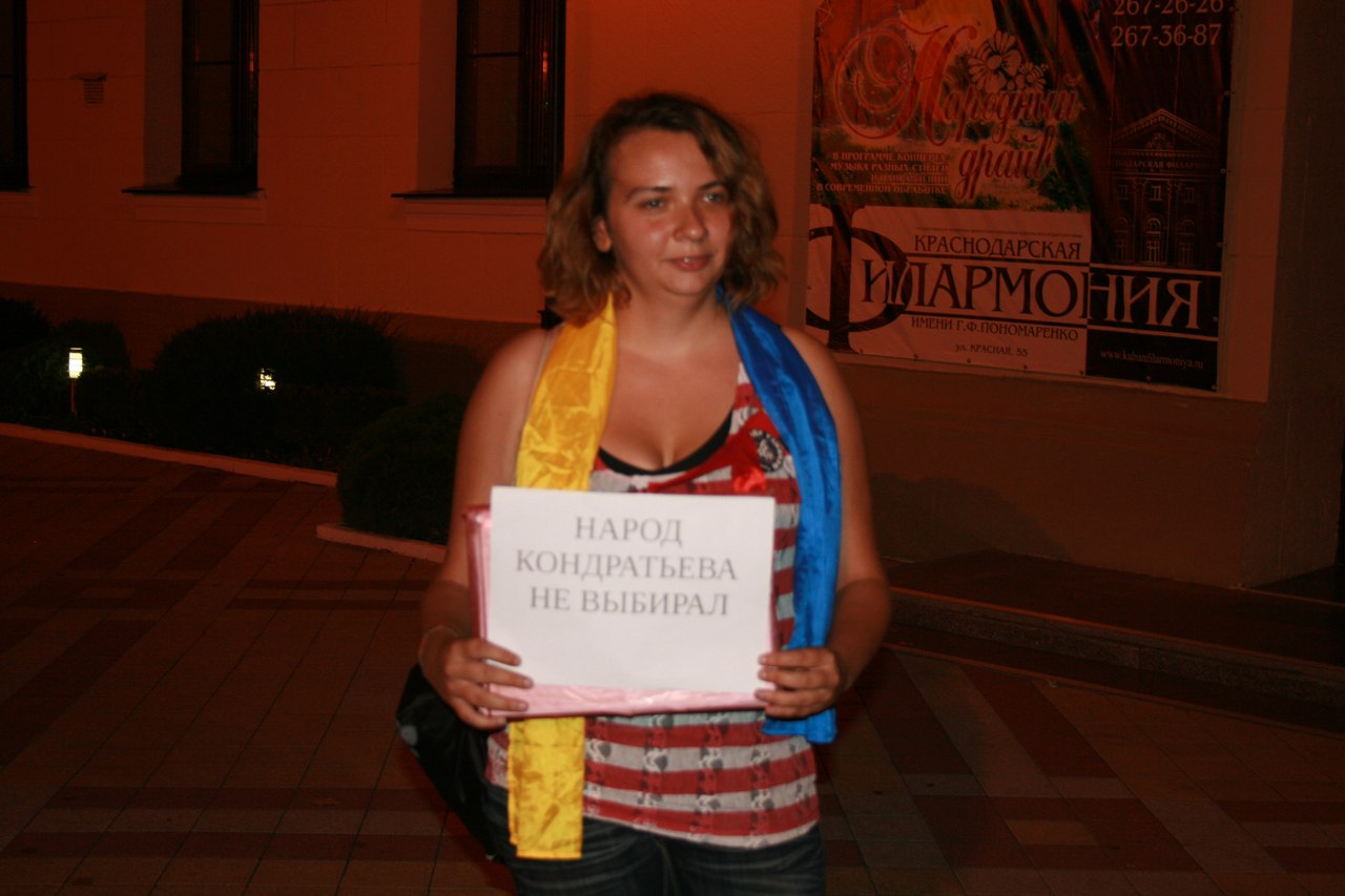 Краснодарские активисты Дарья Полюдова и Нина Соловьева провели одиночные пикеты под лозунгом «Народ Кондратьева не выбирал».