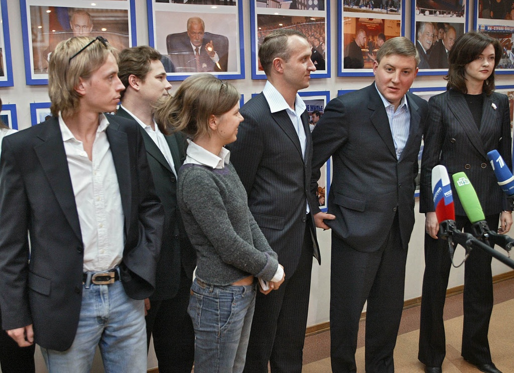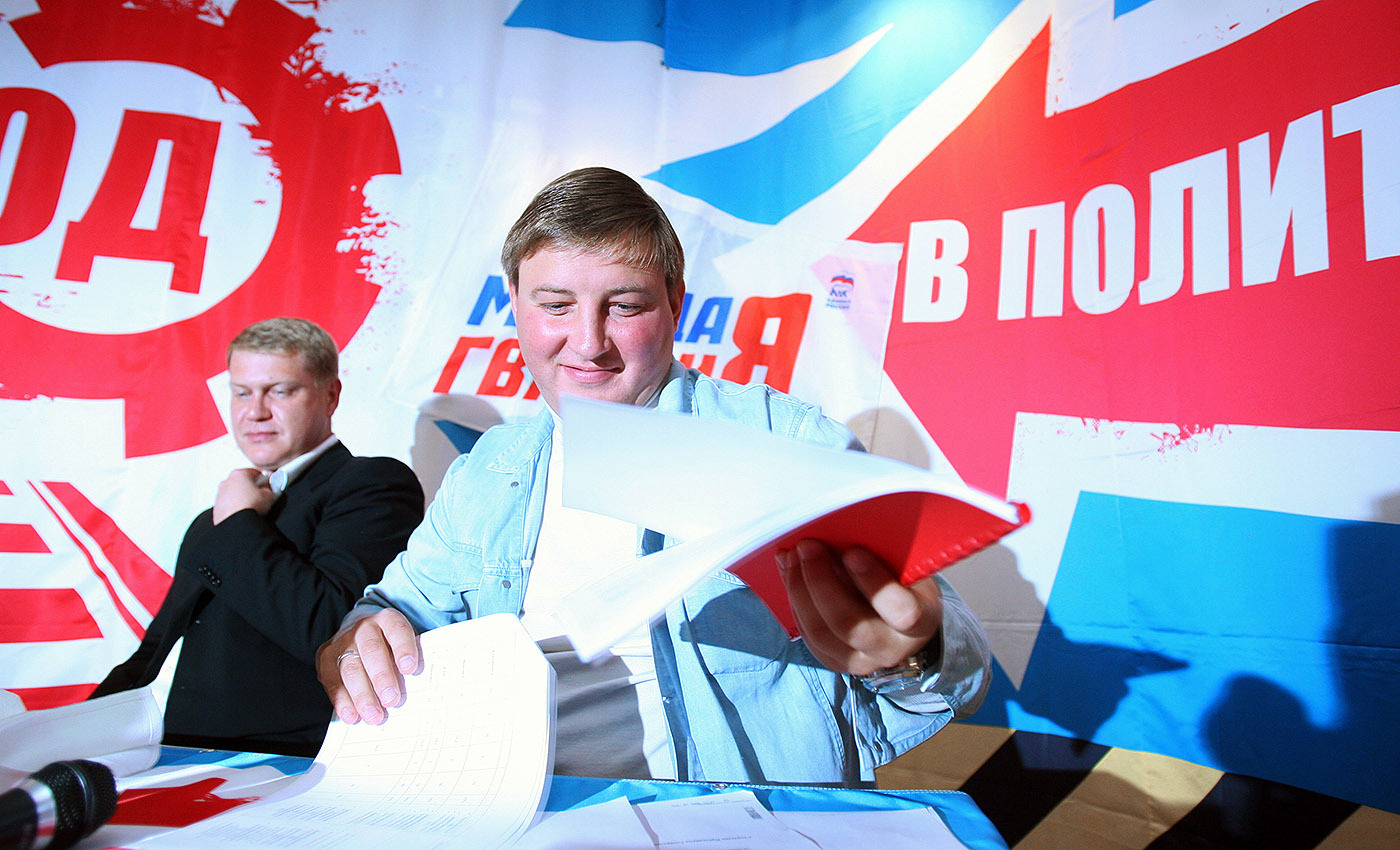 Андрей Турчак и координатор МГЕР по идеологии и политической работе, советник политического департамента ЦИК "Единой России" Иван Демидов на пресс-конференции в Москве в 2006 году. Фото: Руслан Кривобок / РИА Новости