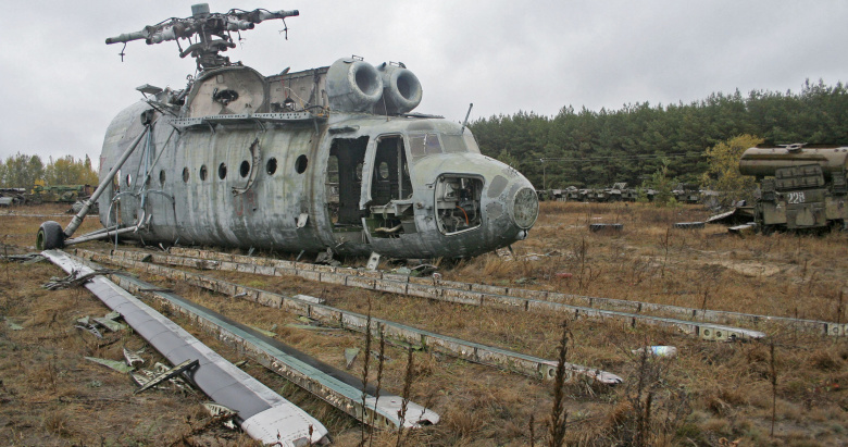 На свалке зараженной техники, которая участвовала в ликвидации аварии на Чернобыльской АЭС.