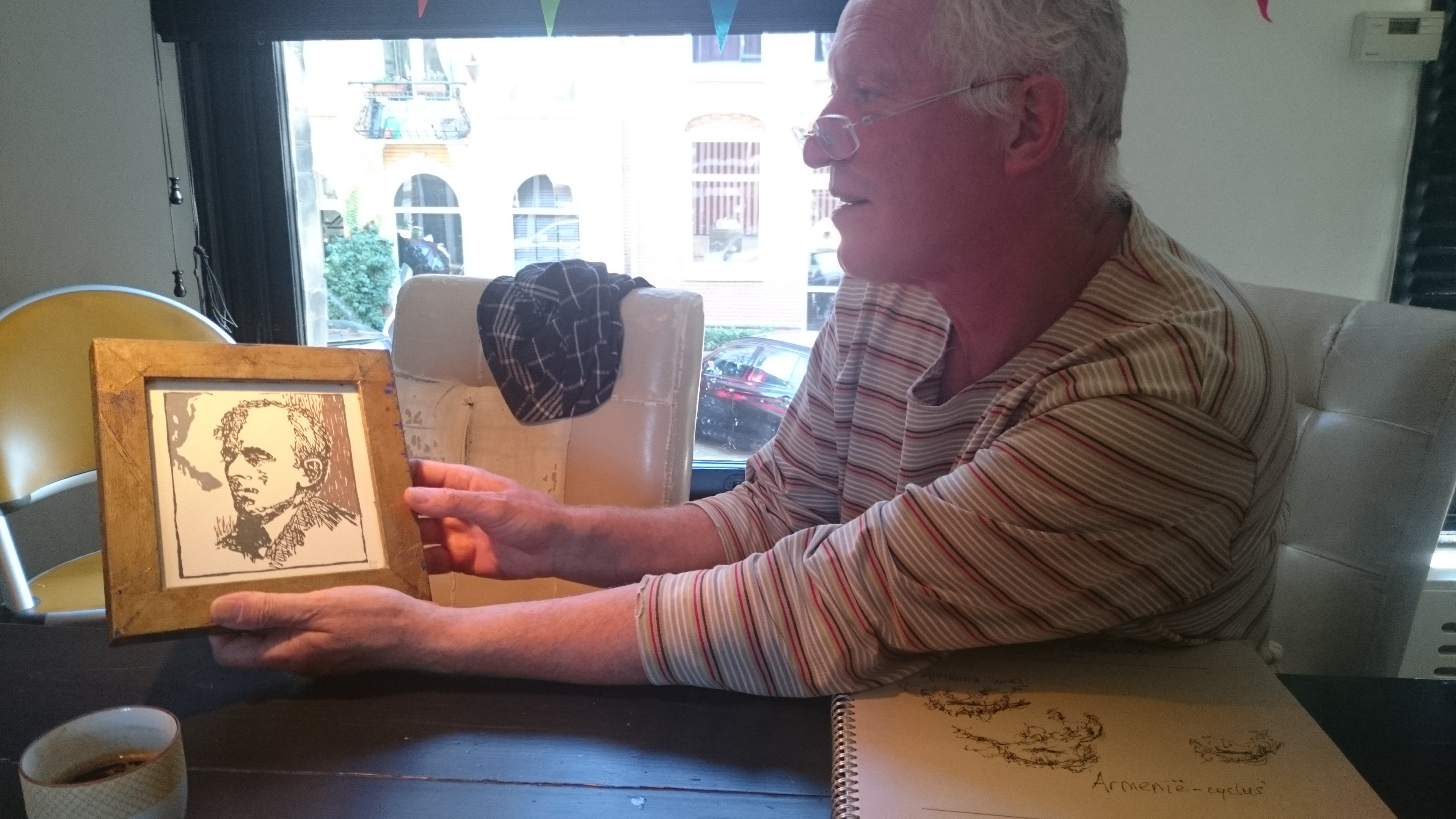 Ситсе Баккер: В преддверии открытия памятника в Петербурге мы проводили серию выставок, в том числе и моей графики. Я в своих работах пытаюсь передать "детскую невинность", яркие краски, юмор в творчестве Мандельштама. Некоторые посетители говорили мне потом, что они еще никогда не пробовали посмотреть на Мандельштама с этой стороны. Таким образом мы подготовили почву для того понимания Мандельштама, которое привезли.