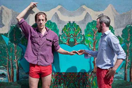 Презентаторы использовали один за другим разные приемы взаимодействия с публикой — высоколобую лекцию про парадоксы одной из их картин с прямыми вопросами в зал, подробное изложение истории своих заболеваний, завершающееся танцем (потому что так всегда бывает после intense moment), настоящий, с потом, сет в сквош. И постоянный прямой взгляд в зал, который заставляет тебя все время вежливо улыбаться. Заканчивается выступление тем, что собравшиеся в душ уставшие презентаторы в гостиничных халатах устраивают сеанс коллективной ингаляции морским воздухом под порывами бриза, производимыми полотенцем.