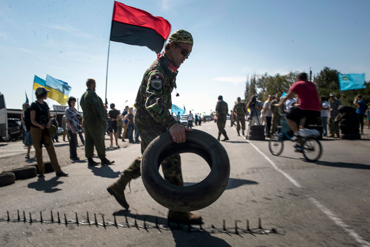 Помимо Арабатской стрелки в Крым с материковой Украины ведут три дороги, и все они сегодня заблокированы крымскими татарами, инициировавшими блокаду, а также вооруженными бойцами «Правого сектора» (организация, запрещенная в РФ), которые присоединились к акции (по словам крымско-татарских организаторов, присоединиться может любая организация и любой человек, поддерживающий блокаду), украинскими пограничниками и милицией. В первые же дни блокады на границу с Крымом съехались и депутаты Верховной рады от разных политических партий, и кандидаты на местные выборы, которые пройдут на Украине через месяц. Все наперебой рассказывают телевизионщикам, с каким энтузиазмом они поддерживают блокаду.