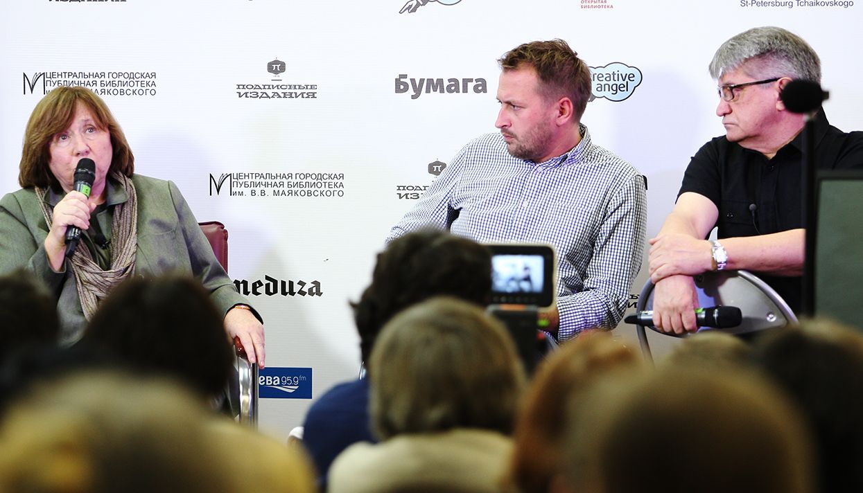 В Санкт-Петербурге 26 сентября проект «Открытая библиотека» провел серию дискуссий. «Медуза» представляет расшифровку беседы режиссера Александра Сокурова и писателя Светланы Алексиевич. Их разговор был посвящен теме «Время секонд-хенд».