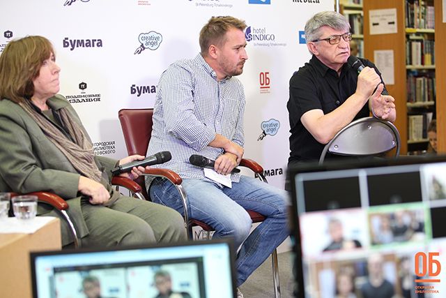 Несколько вводных слов о том, что вам сегодня предстоит увидеть и услышать. Во-первых, я хочу сразу сказать, что те, кто не с нами сегодня, не здесь на Фонтанке, могут смотреть прямой эфир на портале meduza.io. Спасибо огромное нашему любимому СМИ, «Медуза», спасибо вам. Кроме того, мы как всегда просим вас оказать поддержку нашим друзьям из благотворительной организации «Ночлежка», которые помогают бездомным Петербурга. Стоят их ящики в этом зале и внизу на первом этаже около входа, поэтому если вы чем-то им поможете, мы будем очень-очень благодарны. Кроме того, призываю вас присоединяться к нам в наших группах в социальных сетях — в фейсбуке, «ВКонтакте»; смотреть обновления и подписываться на рассылку на нашем новом сайте open-lib.ru, там все новости, смотрите, читайте. Кроме того, на сайте «Медузы» появятся полные расшифровки и видео сегодняшних диалогов.