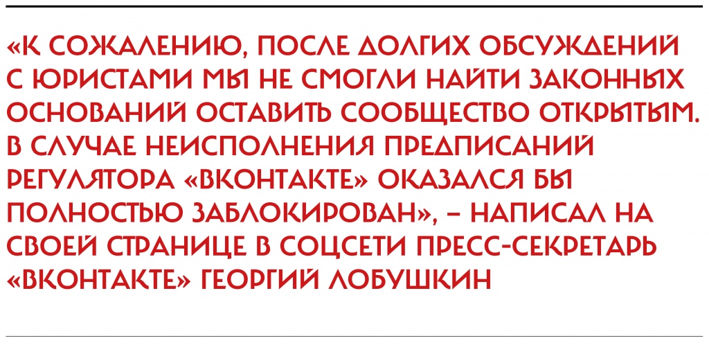 21 сентября, понедельник«Роскомнадзор» потребовал от интернет-провайдеров заблокировать доступ к сообществу «Дети-404». Соответствующее разрешение ведомство получило: на основании решения Центрального районного суда Барнаула еще в августе информацию на странице группы в социальной сети «ВКонтакте» признали пропагандой нетрадиционных сексуальных отношений среди несовершеннолетних. Сообщество было заблокировано, но в соцсети сразу же появилась альтернативная группа помощи ЛГБТ-подросткам.