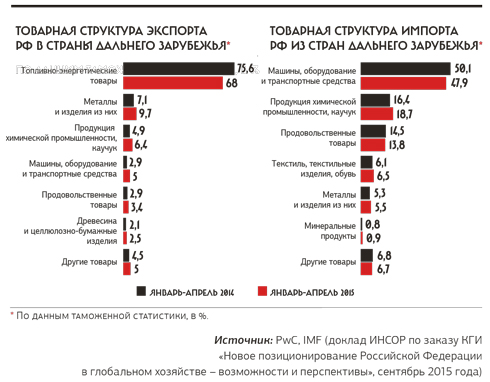 Как повернутьсяЕще одна линия, по которой власть явно нуждается в советах: как строить внешнеэкономическое сотрудничество. Каково новое место России в мире после решения пожертвовать своим присутствием в глобальном сообществе, обменяв его на территориальные приобретения? Доклад на эту тему, подготовленный ИНСОРом по заказу Комитета гражданских инициатив Алексея Кудрина, будет обсуждаться на заседании КГИ 29 сентября. Название доклада — «Новое позиционирование Российской Федерации в глобальном хозяйстве» — не может не вызвать удивления. Какое такое глобальное позиционирование, когда против чиновников и госкомпаний действуют санкции, обмен технологиями с развитыми странами затруднен, почти прекращено иностранное кредитование? Налицо осознанное выпадение из глобального хозяйства, а не новое в нем позиционирование! Участие в глобальном хозяйстве подразумевает встраивание в экспортно-импортные цепочки транснациональных компаний и совместные проекты НИОКР. Мы же активно занимаемся импортозамещением (самообеспечением — зачем нам глобальное, мы как-нибудь сами), хотя стратегически надо бы заниматься экспортозамещением — наращиванием несырьевого экспорта. Сейчас представительство в экспортной линейке даже отраслей со средним уровнем добавленной стоимости, не говоря уже о продуктовых линейках, генерируемых экономикой знаний, находятся на уровне, не отличимом от статистической погрешности, говорится в докладе.