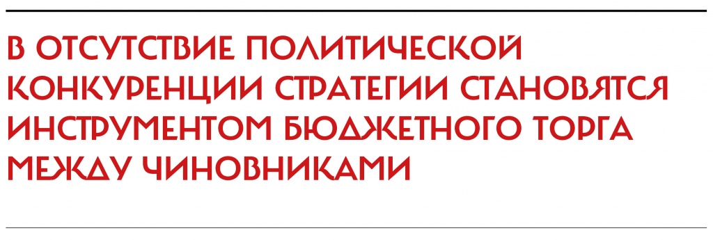 Зачем нужны стратегииОбычно спрос на экспертизу возникает, когда (а) что-то идет не так или когда (б) есть несколько вариантов решения проблемы, каждый со своими плюсами и минусами, и оценка сравнительных преимуществ этих вариантов — дело не очевидное. Другое дело — стратегии. В демократических странах стратегиями занимаются не эксперты и чиновники, а борющиеся друг с другом политические силы, у которых свое видение того, в чем именно состоит проблема и что надо сделать. Выбор между альтернативными стратегиями осуществляют избиратели, понимающие, что у разных политических сил свои представления о том, что нужно сделать с бюджетом, налогами, медициной, армией, образованием, банками и пр. Совсем не так в авторитарных режимах. В отсутствие политической конкуренции стратегии становятся инструментом бюджетного торга между чиновниками, которые стремятся максимизировать свой контроль за распределением ресурсов и, следовательно, свои рентные доходы.