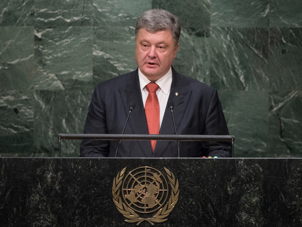 В результате украинская делегация пошла на хитрость: Порошенко немного опоздал, так что, в соответствии с протоколом, его выступление было перенесено в конце очереди своей группы, и он произнес речь прямо перед Лавровым. Российская делегация покинула зал заседаний на время выступления Порошенко — шум был поднят, эффект достигнут.