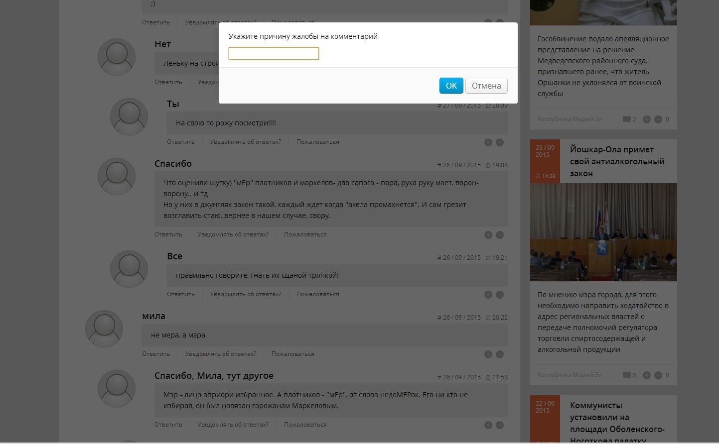 На «7x7» появилась возможность пожаловаться на комментарий. Функция доступная только блогерам сайта. Воспользоваться функцией можно сначала нажав под комментарием «пожаловаться», а потом, в всплывшем окне необходимо указать причину жалобы. Жалобы без указания причины рассматриваться не будут.