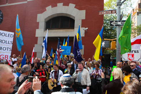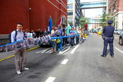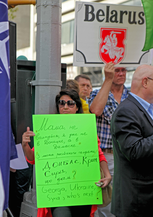 У штаб-квартиры ООН собрались представители различных диаспор Накануне выступления российского президента на заседании Генеральной ассамблеи ООН в Нью-Йорке прошло сразу два протестных митинга — у штаб-квартиры ООН и у здания Российской миссии ООН. На каждый из митингов собралось около полутысячи человек. По словам участников, они хотели привлечь внимание к агрессивной внешней политике России и не допустить, чтобы мировые лидеры договаривались с Путиным по сирийскому вопросу.