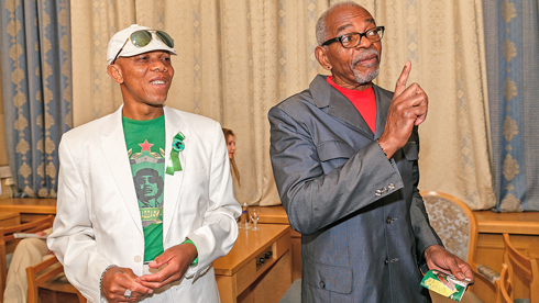 Давние друзья российских антиглобалистов — активисты движения «Ухуру» (справа) и «За Каддафи и его народ» (слева), Москва, 20 сентября 2015 года