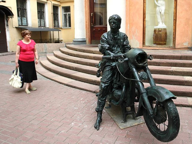 Идею увековечить Цоя сидящим на мотоцикле "Ява" с разбитой фарой московский скульптор Алексей Благовестнов предложил еще в 2002 году, в 2004 году проект получил первую премию на российском конкурсе молодых художников имени П. Третьякова, напоминает "Интерфакс".