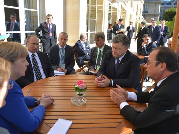 По словам Пескова, в ходе встречи «четверки» достигнута договоренность о времени начала отвода легких вооружений сторонами конфликта на Украине: отвод вооружений калибром менее 100 мм начнется 3 октября в полночь.