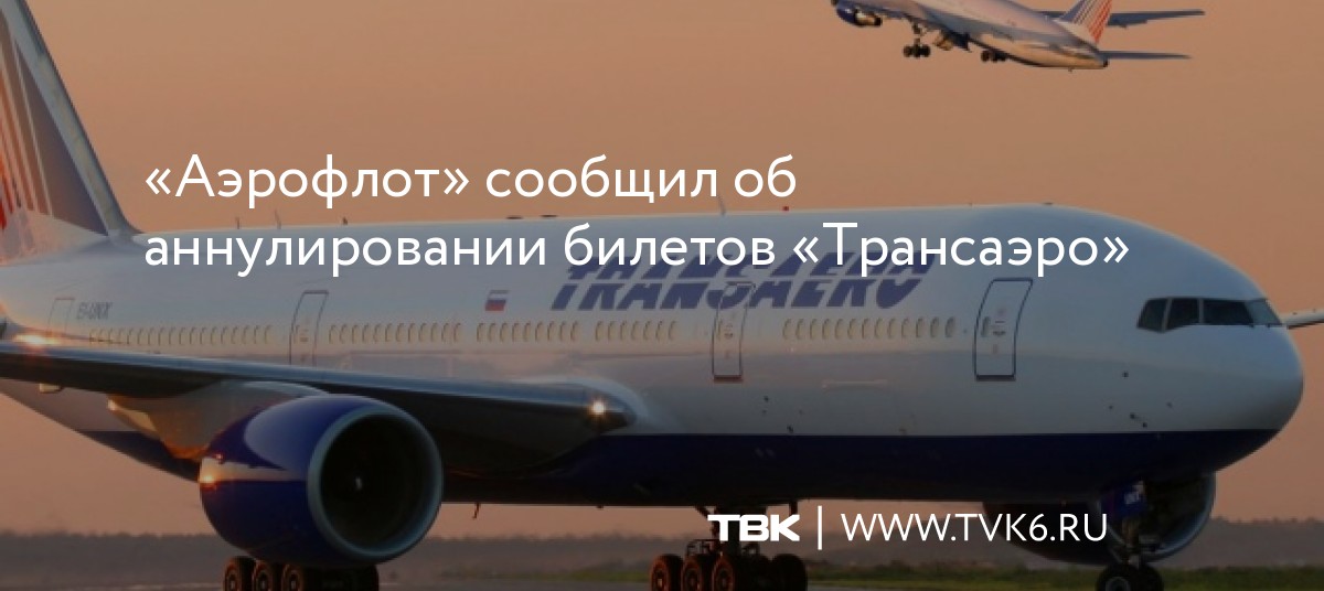 Билеты пассажиров авиакомпании «Трансаэро» с датой вылета до 15 декабря 2015 г. и возвращением после этой даты будут аннулированы. Об этом со ссылкой на заявление «Аэрофлота» сообщает РИА Новости.