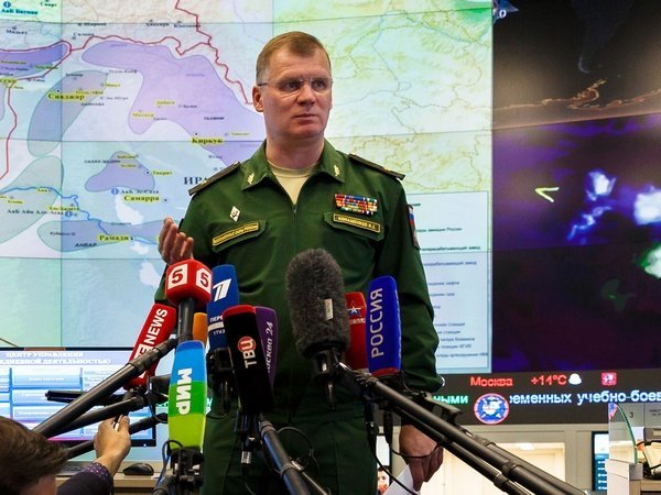 Конашенков заявил: «Все сообщения зарубежных СМИ, что российские самолеты якобы нанести воздушные налеты по городу Пальмира, – абсолютная ложь».