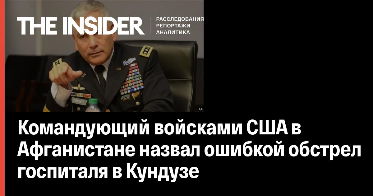 По словам командующего, американские военнослужащие оказывали «непосредственную авиационную поддержку» войскам Афганистана, которые вели сражения с талибами в Кундузе. Он заявил, что нанесение удара по данному объекту со стороны США было сделано «по ошибке».