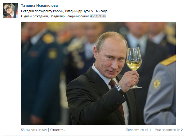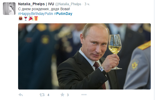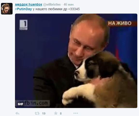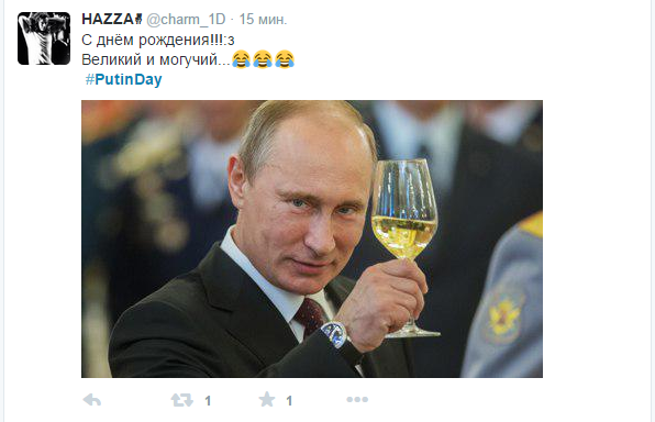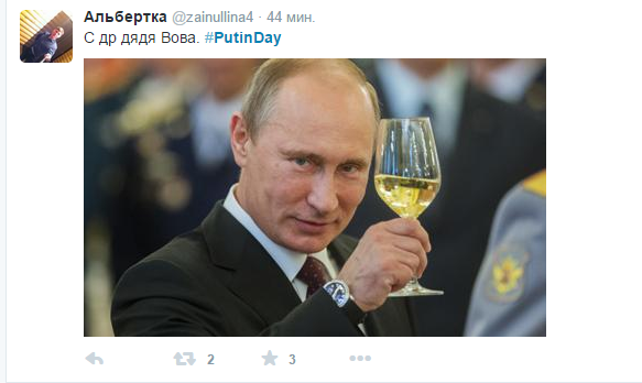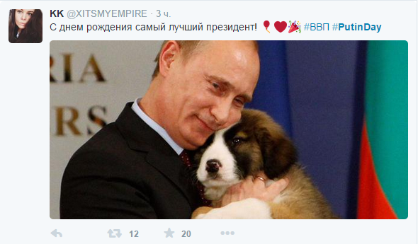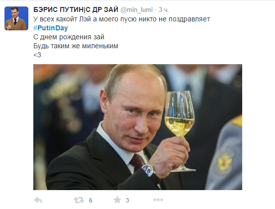 #PutinDay pic.twitter.com/FgYLprZWin— Neyton Krot❤ (@Emi_LeeFt) Twitter с днем рождения киса #PutinDay pic.twitter.com/YkzBIJe8bW