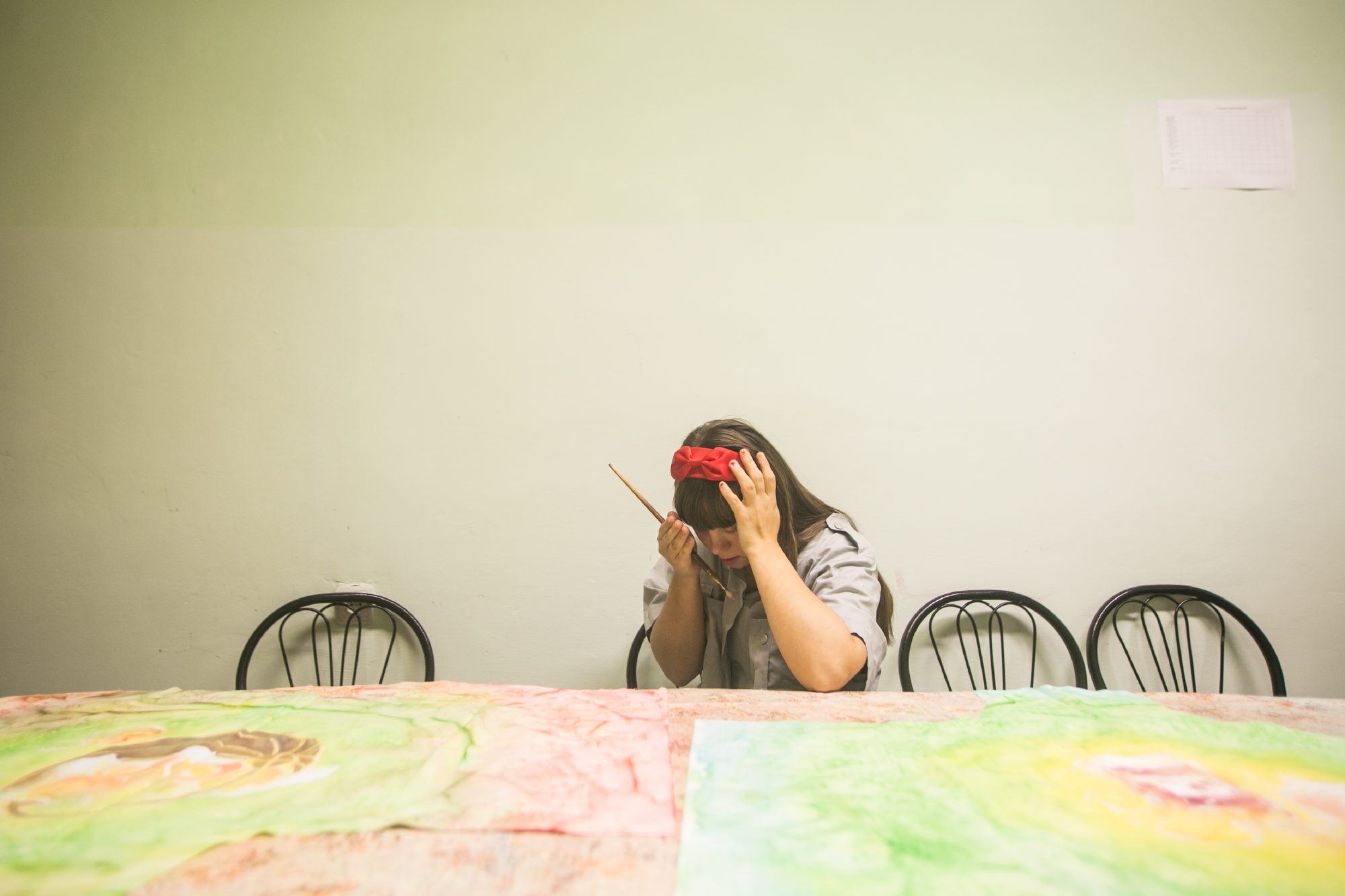 «Надежда» для ее «работников» — это не только возможность развивать мелкую моторику с наждачкой в руках и передышка для родителей, которые могут заработать на фрукты. Это дверь в насыщенную жизнь взрослых людей. Ходить на работу, учиться, дружить, влюбляться, радоваться успехам и переживать неудачи, смеяться, плакать, общаться с другими «надеждинцами» и со сверстниками из пединститута. То, чего лишены сотни других людей, запертых по квартирам, то, чего так не хватает Наташе, — для нее в «Надежде» нет места, и ходить сюда она не может: центр находится в цокольном этаже старого деревянного дома, везде тут теснота, лесенки и порожки, да и к зданию на коляске не подъедешь.