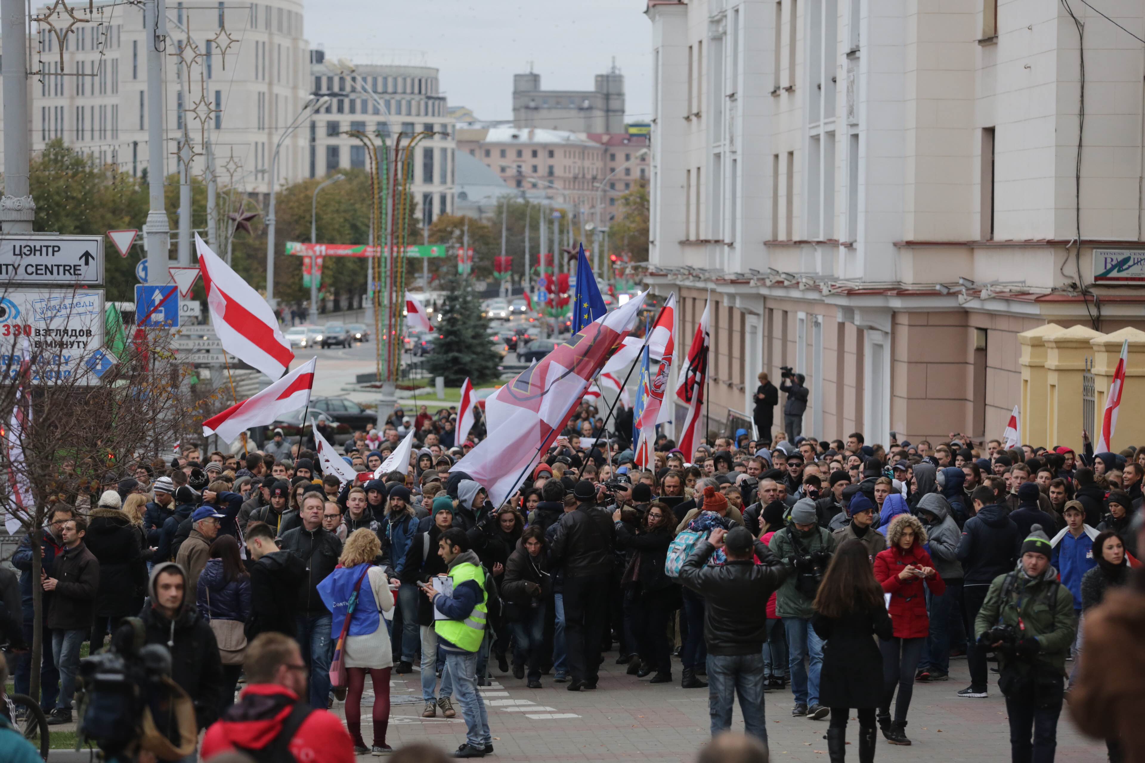 Участники несанкционированной белорусскими властями оппозиционной акции "За свободные справедливые выборы" завершили почти трехкилометровое шествие по главному проспекту Минска и проводят митинг на площади Якуба Коласа. Участники митинга призвали избирателей бойкотировать президентские выборы 11 октября, сообщает корреспондент Белорусской службы Радио Свобода/Радио Свободная Европа.