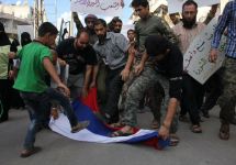 В статье на сайте Znak.Com опубликован твит блогера Рустема Адагамова от 8 октября, который приводит фотографию пользователя @bangkokdave. На ней изображено, как демонстранты в Сирии топчут российский флаг. "Демонстрация в Алеппо наглядно демонстрирует еще один несомненный успех российской внешней политики", - комментирует снимок Адагамов.