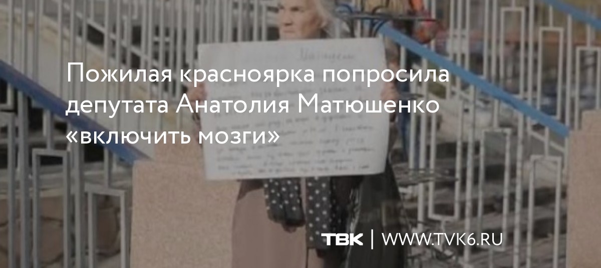 Именно ему пенсионерка посвятила плакат с надписью «Депутат Матюшенко, включи свои мозги!».