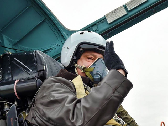 Президент Украины Петр Порошенко полетал на истребителе-перехватчике Су-27. В Twitter пресс-секретаря украинского лидера Святослава Цеголко опубликованы фотографии, на которых видно, как Порошенко в авиационном шлеме сидит в кабине самолета позади пилота.