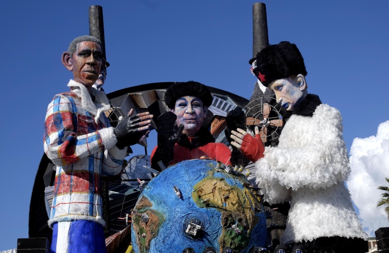 Фигуры Барака Обамы, Си Цзиньпина и Владимира Путина на карнавале в Италии.